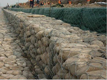 高爾凡石籠網(wǎng),又稱格賓(英文gabions)結(jié)構(gòu),是由多個石籠按照一定建造方式疊砌而成的工程結(jié)構(gòu)。其基本工作單元為填石的石籠,填石要滿足密度,粒徑和級配,形狀,擋風化性,不腐蝕性等方面的要求。石籠是指能填充石塊或其他填充材料,有一定模數(shù),用作結(jié)構(gòu)單元的金屬網(wǎng)籠,依厚度又分為網(wǎng)箱和網(wǎng)墊。石籠結(jié)構(gòu)具有很多優(yōu)點,如良好的生態(tài)可恢復性,變形性能良好,整體性強,透水性良好,結(jié)構(gòu)長久,工程造價低,制作,運輸,施工方便,易于維護和改造等,可用于公路鐵路邊坡支護,礦山護坡,橋墩加固,海岸防護,河岸河床防護,防波堤,建筑外墻裝飾,單個裝飾石籠結(jié)構(gòu)等。