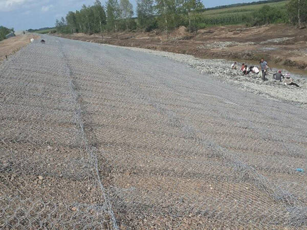 雷諾護墊也叫石籠護墊,格賓護墊,是指由機編雙絞合六邊形金屬網(wǎng)面構(gòu)成的厚度遠小于長度和寬度的墊形工程構(gòu)件。雷諾護墊中裝入塊石等填充料后連接成一體,成為主要用于水利堤防、岸坡等的防沖刷結(jié)構(gòu),具有柔性、對地基適應性的優(yōu)點。